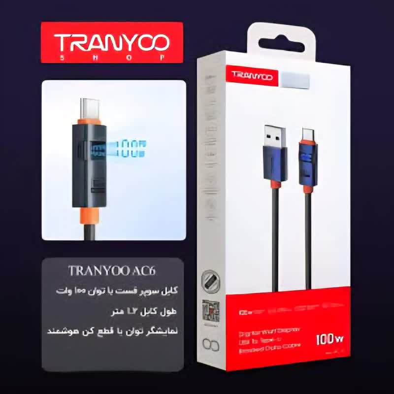 نوع کابل: USB به TYPE C نمایشگر تصویری لحظه ای توان قطع کن هوشمند طول کابل 1.2 متر سوپر فست شارژ توان 100 وات جنس کابل کنفی مجهز به تکنولوژی های محافظتی سازگاری با تمامی دستگاهها مشخصات کلی طول کابل 120 سانتی متر نوع کابل Type-C نوع رابط Type-C قابلیت انتقال اطلاعات دارد قابلیت ها دارای نمایشگر نشان دهنده توان, شارژ با حداکثر توان 100 وات