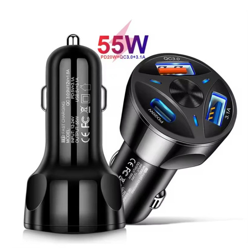 شارژر فندکی 55 وات سه پورت مدل MLE-003 به همراه کابل USB-C